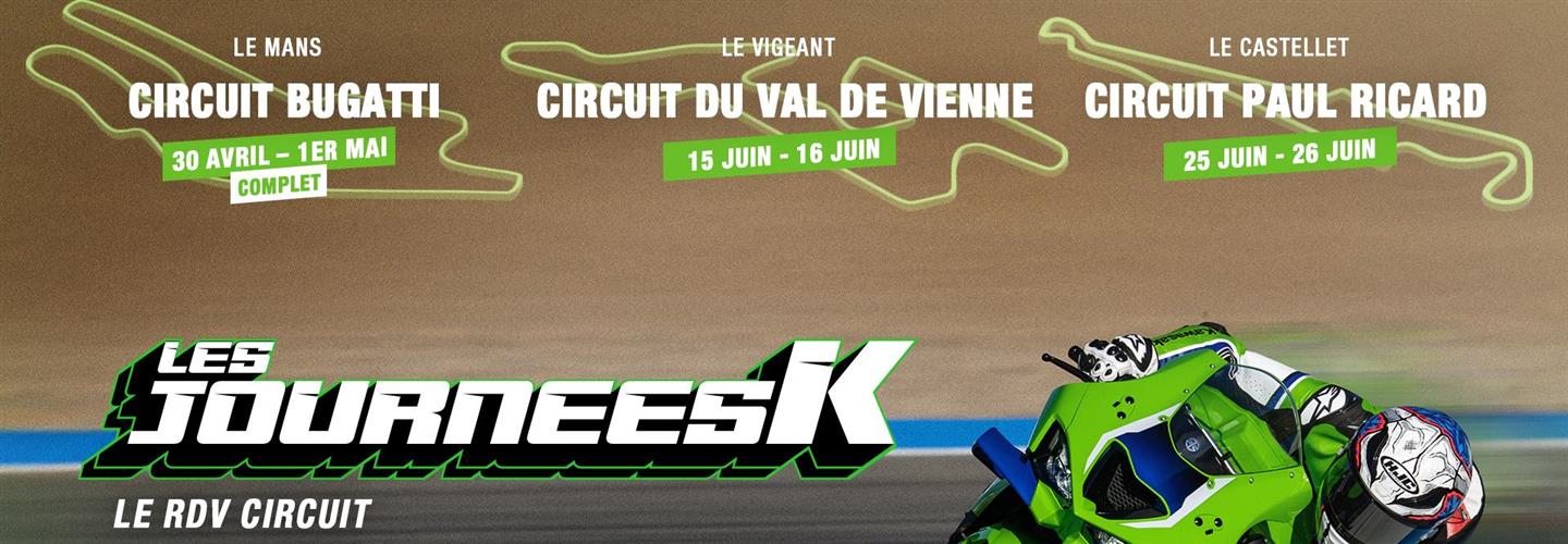 o Possesseur de Kawasaki : 480€o Autre marque : 499€Déjeuner compris au restaurant du circuit Paul Ricard.Les participants devront impérativement se présenter avec leur équipement cuir complet, comprenant une combinaison ou un ensemble de pantalon et veste zippables, une dorsale, des bottes moto, des gants ainsi qu'un casque homologué pour la piste.Les inscriptions sont ouvertes via notre site internet : Journées K 2026Pour toute question, contactez [email protected]Rejoignez-nous pour vivre une expérience de roulage inoubliable sur des circuits mythiques !Sportivement,L'équipe Kawasaki France