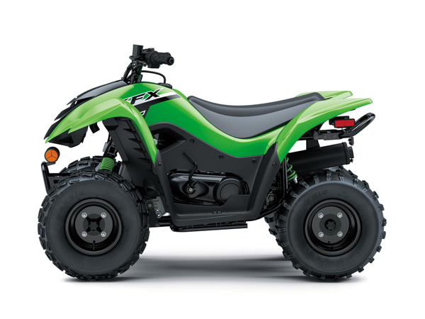 Le plaisir à quatre roues commence avec le KFX90. Faites sortir les enfants et préparez-les à rouler avec la gamme de quads KFX90, offrant une puissance et une taille adaptées aux pilotes de 10 ans et plus. Les KFX90 permettent aux enfants d’aborder des pistes plus techniques et de vivre de plus grandes aventures grâce à leur moteur de 89,9 cm³ et leur suspension sportive.