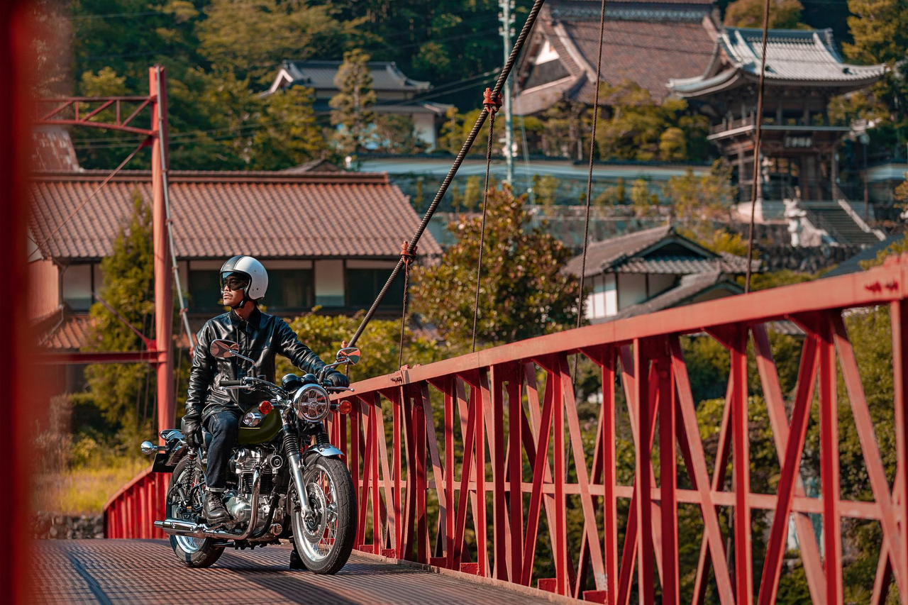 Les roues de grand diamètre, 19 pouces à l’avant et 18 pouces à l’arrière, confèrent à la W800 sa maniabilité classique : un équilibre parfait entre une prise de virage souple et légère, et une grande stabilité en ligne droite. La grande roue avant apporte notamment cette sensation caractéristique d’une direction posée et maîtrisée. En comparaison, les roues 18 pouces à l’avant et à l’arrière des W800 STREET et CAFE offrent une maniabilité légèrement plus sportive.