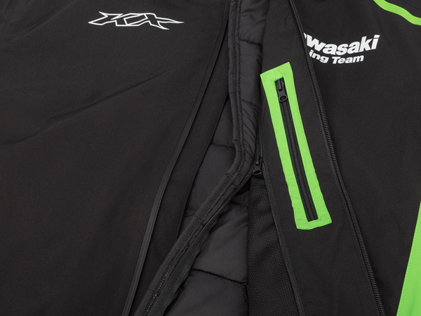 Blouson 2 en 1 avec doublure thermique amovible et matière déperlante Doublure thermique amovible Serrage interne des poignets Poches interieurs et exterieurs zippés Logo imprimés 96% polyester 4% Elastane