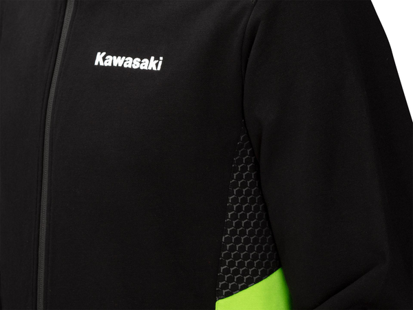 Sweat-shirt zippé avec poches latérales zippées, col montant, bas et poignets côtelés- Empiècements verts aux épaules