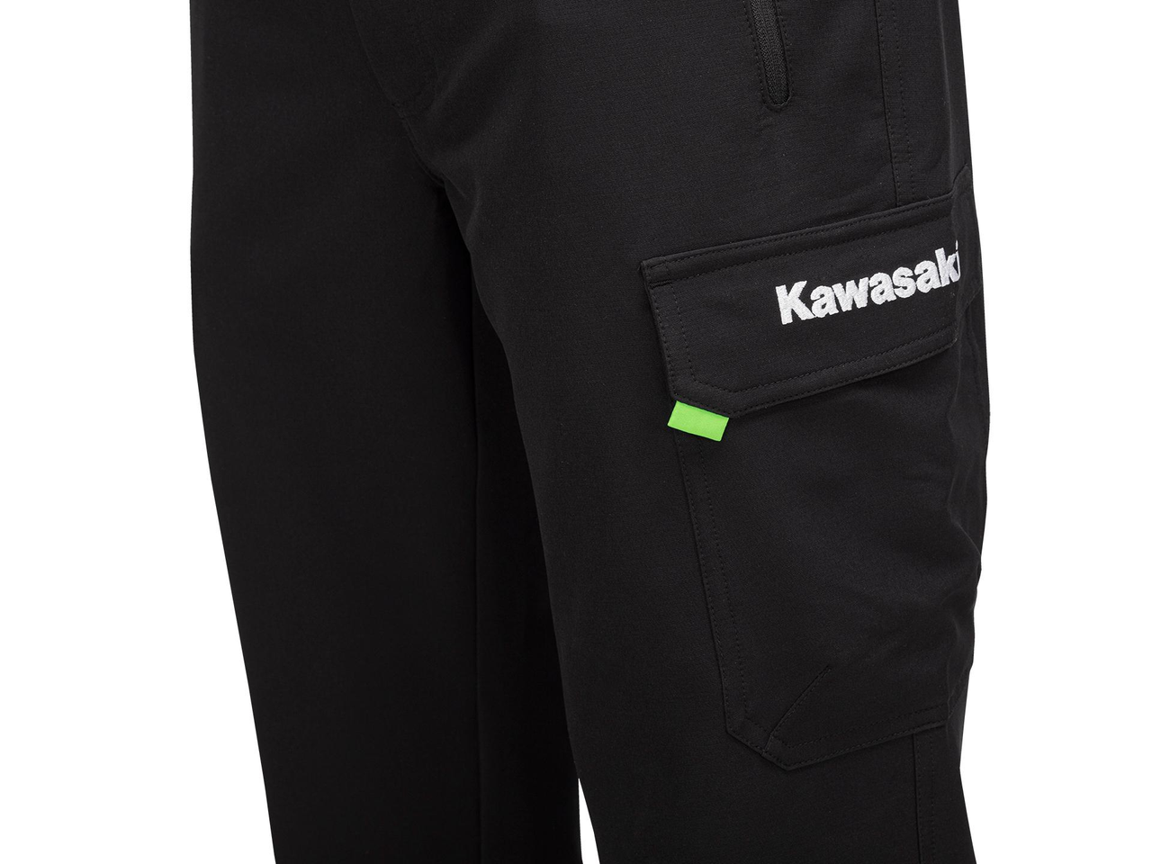 Ce pantalon cargo est équipé d’une poche zippée et d’une poche 3D sur la jambe. Fabriqué à partir d’un tissu extensible pour offrir une fléxibilité maximale. Logo Kawasaki brodé Composition: 91%Polyester 9%Spandex