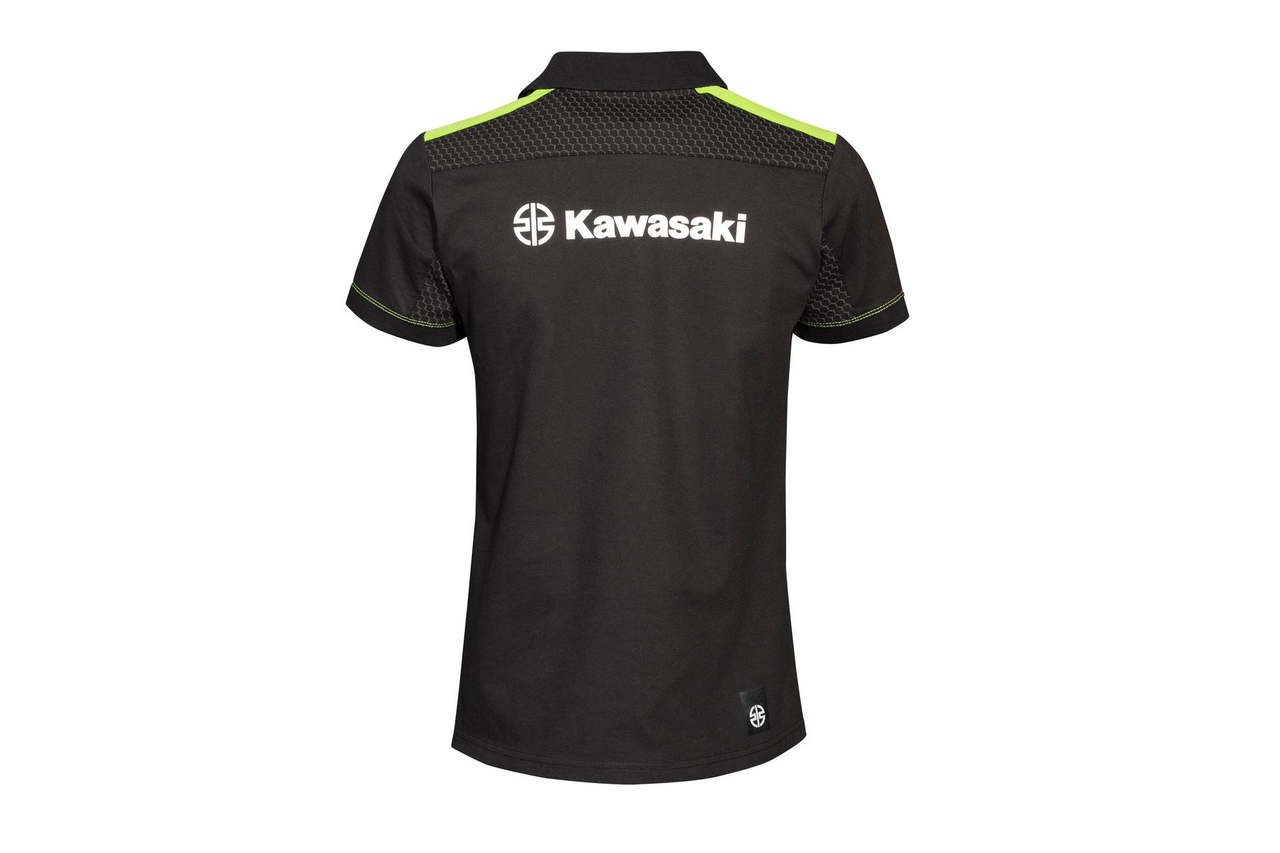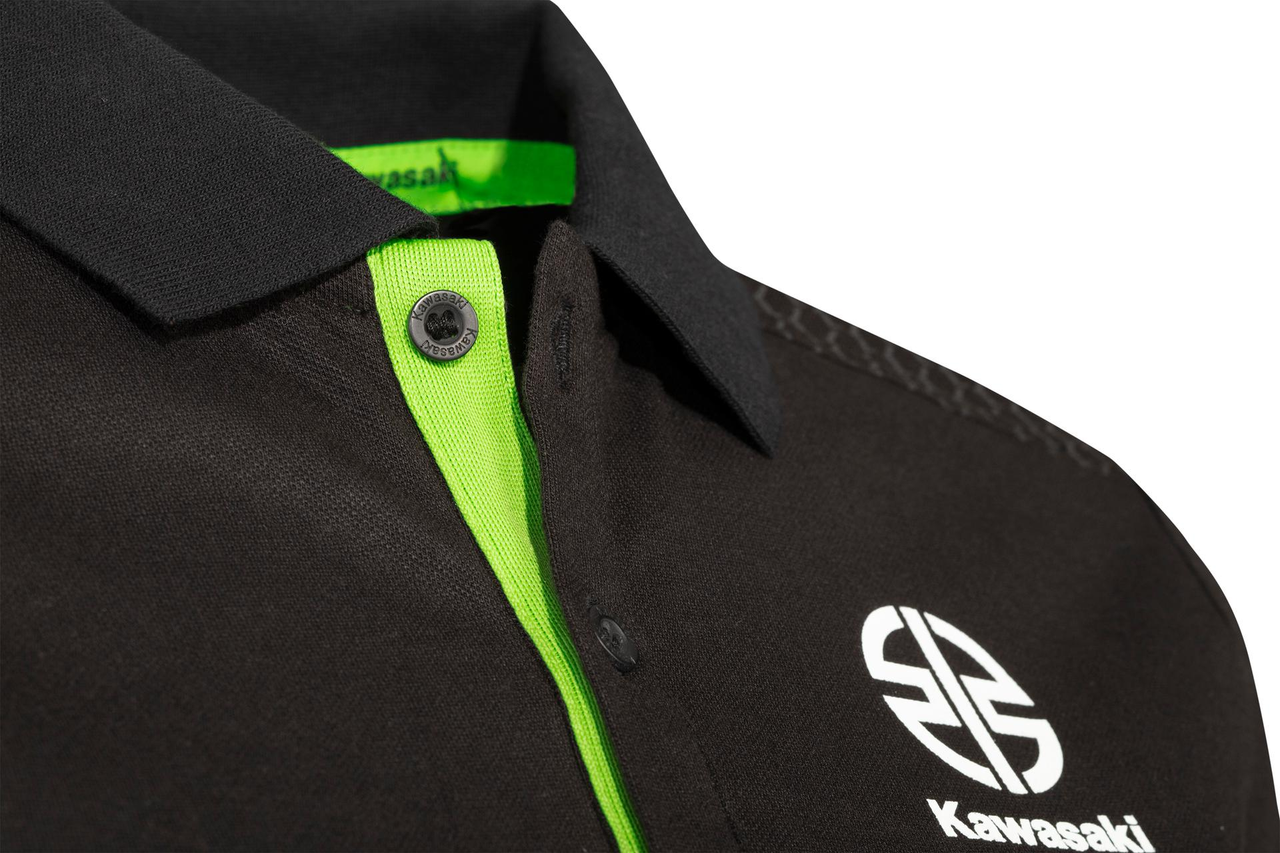 Polo à manches courtes avec ouverture boutonnée et manches à revers. Ouverture boutonnée Zones des épaules et des aisselles avec un imprimé hexagonal gris Fentes latérales avec ruban contrastant vert Tissu piqué 95% Coton & 5% Elasthanne