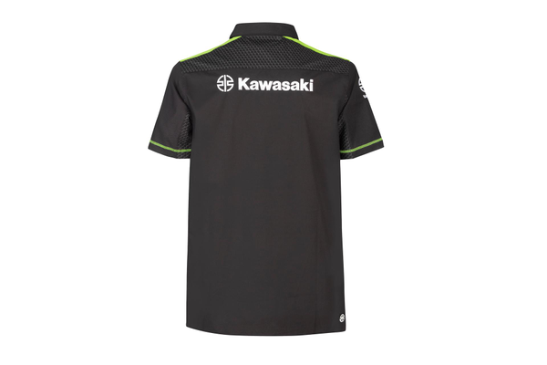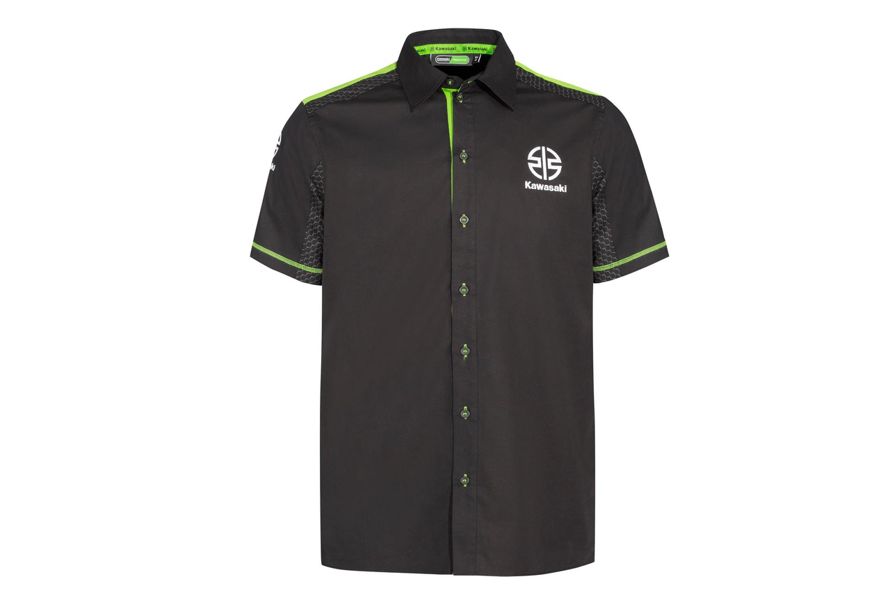 Chemise boutonnée à manches courtes Zones des épaules et des aisselles avec un imprimé hexagonal gris Ouverture boutonnée verte contrastante sur le devant Tissu popeline de poids moyen 97 % coton/3 % élasthanne