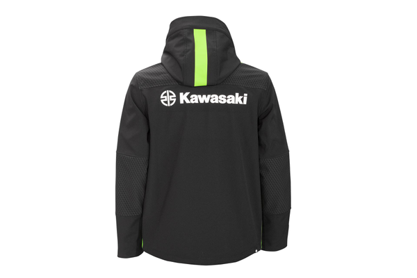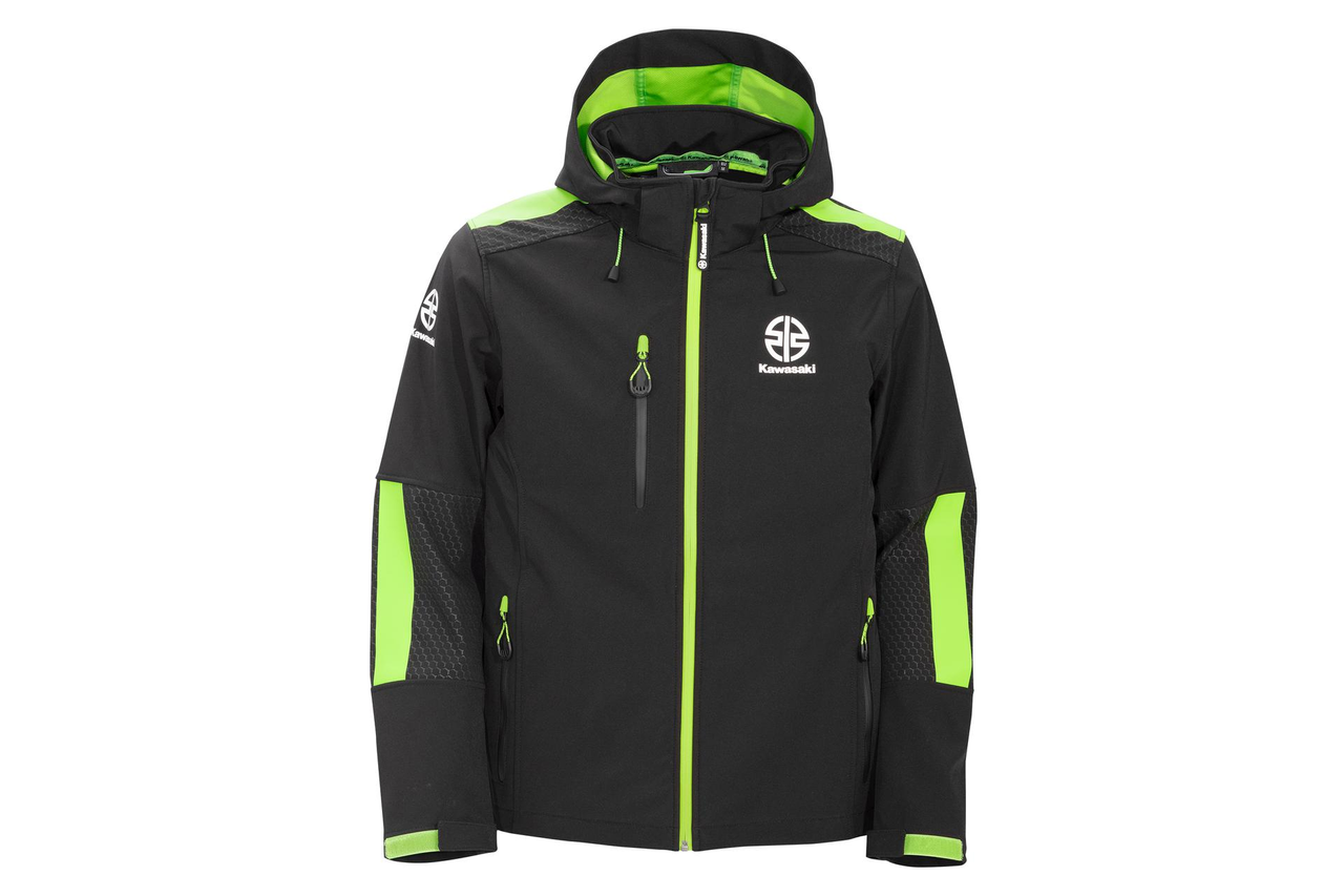 Veste softshell, capuche amovible, poches intérieures et extérieures zippées et poignets réglables par velcro.
