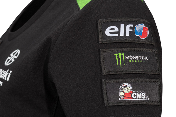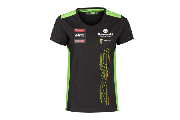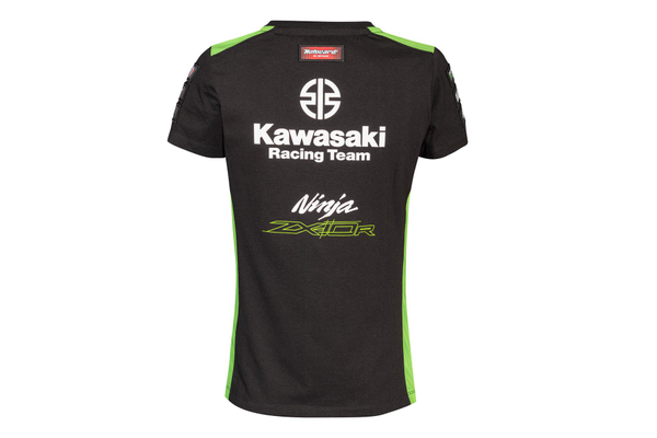 T-shirt à manches courtes et col rond aux couleurs et design de l'équipe WSBK 2023 de Kawasaki Logos de course et de sponsor Kawasaki Tissu à maille unique 50% coton 50% polyester