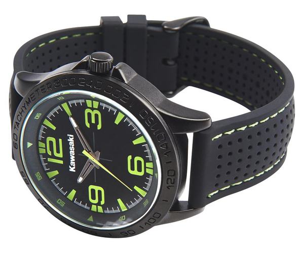 Montre Kawasaki analogique Le boîtier en acier inoxydable plaqué noir est résistant à l'eau jusqu'à 5 ATM (40m de profondeur). Le mouvement à quartz japonais garantit sa précision Bracelet en caoutchouc, boucle en acier.