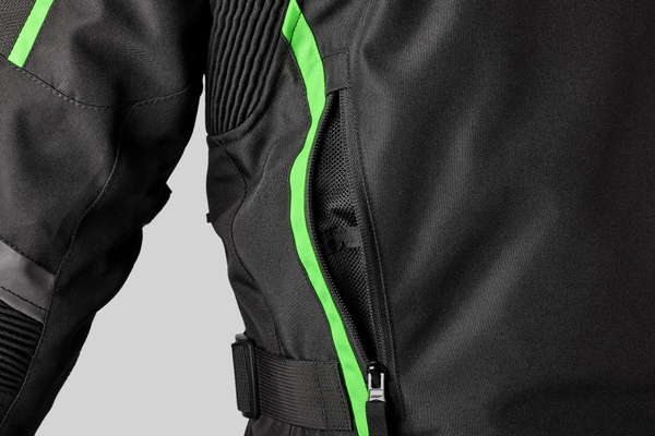 Les panneaux extensibles ainsi que les ajusteurs aux bras et à la taille permettent une coupe plus confortable et cintrée. Les caractéristiques supplémentaires comprennent des fermetures à glissière MAX, une fermeture éclair de connexion à 360° pour se raccorder à tout vêtement RST, et des zones de ventilation avec poches multiples pour l'admission et l'évacuation de l'air, qui peuvent être ouvertes selon les besoins pour canaliser le flux d'air dans, autour et hors de la veste.
