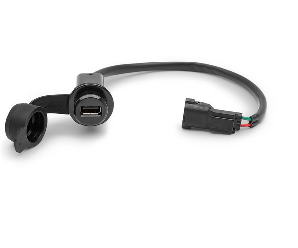 Prise USB (A) femelle 5V sous la selle passager pour charger vos appareils électriques.