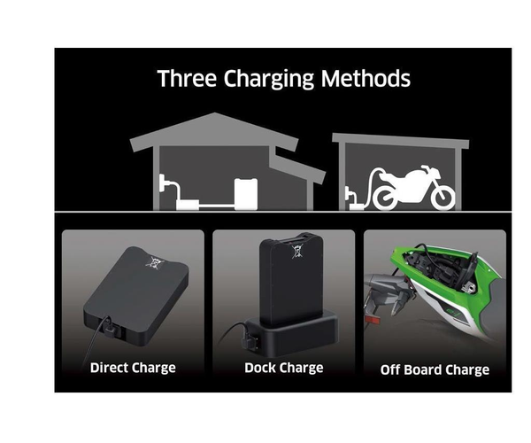Chargeur de batterie a brancher soit directement sur la batterie, sur la moto ou sur le dock (en option)