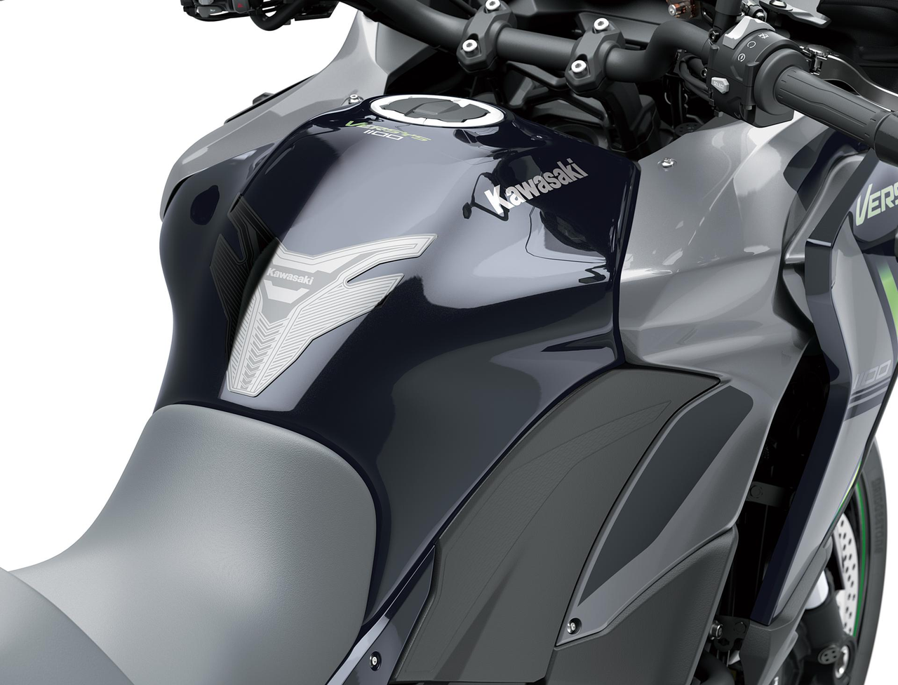 Protection de reservoir noire avec logo Kawasaki, protège la peinture des rayures.